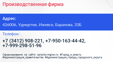 Производственная фирма по адресу 426006, Удмуртия, Ижевск, Баранова, 33Б в дальнейшем Организация, размещена в следующих категориях: