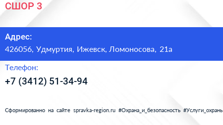 СШОР №3 по адресу 426056, Удмуртия, Ижевск, Ломоносова, 21а в дальнейшем Организация, размещена в следующих категориях:
