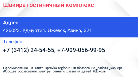 Шакира, гостиничный комплекс по адресу 426023, Удмуртия, Ижевск, Азина, 321 в дальнейшем Организация, размещена в следующих категориях: