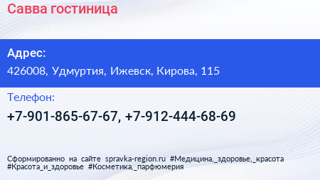Савва, гостиница по адресу 426008, Удмуртия, Ижевск, Кирова, 115 в дальнейшем Организация, размещена в следующих категориях: