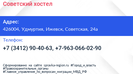 Советский, хостел по адресу 426004, Удмуртия, Ижевск, Советская, 24а в дальнейшем Организация, размещена в следующих категориях: