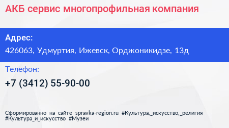АКБ-сервис, многопрофильная компания по адресу 426063, Удмуртия, Ижевск, Орджоникидзе, 13д в дальнейшем Организация, размещена в следующих категориях: