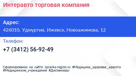 Интеравто, торговая компания по адресу 426010, Удмуртия, Ижевск, Новоажимова, 12 в дальнейшем Организация, размещена в следующих категориях: