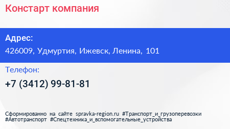Констарт, компания по адресу 426009, Удмуртия, Ижевск, Ленина, 101 в дальнейшем Организация, размещена в следующих категориях: