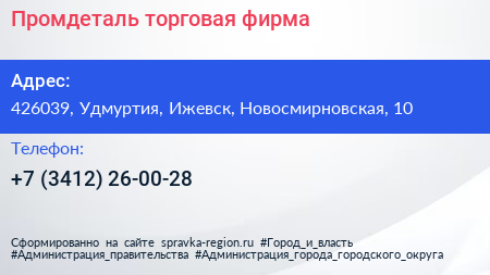 Для связи с организацией воспользуйтесь номером телефона: +7 (3412) 26-00-28. Пн: c 08:00-17:00, Вт: c 08:00-17:00, Ср: c 08:00-17:00, Чт: c 08:00-17:00, Пт: c 08:00-17:00, Сб: выходной, Вс: выходной, вы можете обратиться в эту организацию.