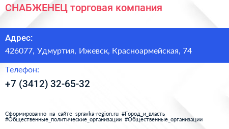 СНАБЖЕНЕЦ, торговая компания по адресу 426077, Удмуртия, Ижевск, Красноармейская, 74 в дальнейшем Организация, размещена в следующих категориях: