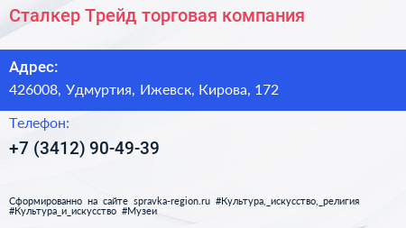 Сталкер Трейд, торговая компания по адресу 426008, Удмуртия, Ижевск, Кирова, 172 в дальнейшем Организация, размещена в следующих категориях: