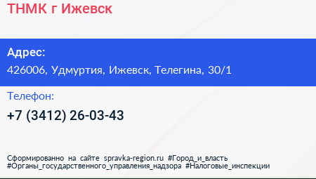 ТНМК, г. Ижевск по адресу 426006, Удмуртия, Ижевск, Телегина, 30/1 в дальнейшем Организация, размещена в следующих категориях:
