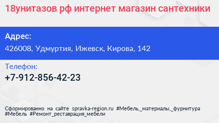 18унитазов.рф, интернет-магазин сантехники по адресу 426008, Удмуртия, Ижевск, Кирова, 142 в дальнейшем Организация, размещена в следующих категориях: