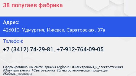 38 попугаев, фабрика по адресу 426010, Удмуртия, Ижевск, Саратовская, 37а в дальнейшем Организация, размещена в следующих категориях: