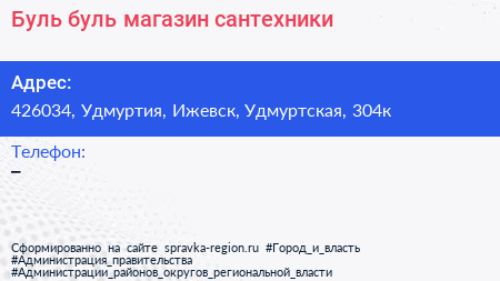 Буль-буль, магазин сантехники по адресу 426034, Удмуртия, Ижевск, Удмуртская, 304к в дальнейшем Организация, размещена в следующих категориях: