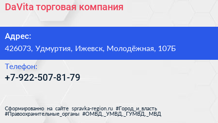 DaVita, торговая компания по адресу 426073, Удмуртия, Ижевск, Молодёжная, 107Б в дальнейшем Организация, размещена в следующих категориях: