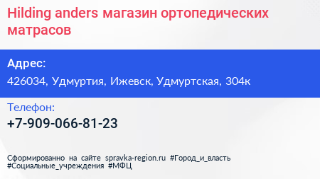 Hilding anders, магазин ортопедических матрасов по адресу 426034, Удмуртия, Ижевск, Удмуртская, 304к в дальнейшем Организация, размещена в следующих категориях: