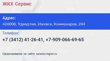 ЖКХ-Сервис по адресу 426008, Удмуртия, Ижевск, Коммунаров, 244 в дальнейшем Организация, размещена в следующих категориях: