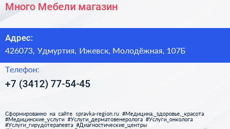 Много Мебели, магазин по адресу 426073, Удмуртия, Ижевск, Молодёжная, 107Б в дальнейшем Организация, размещена в следующих категориях: