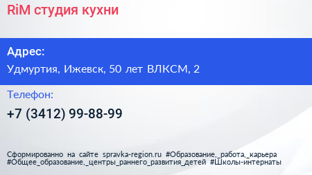 RiM, студия кухни по адресу Удмуртия, Ижевск, 50 лет ВЛКСМ, 2 в дальнейшем Организация, размещена в следующих категориях: