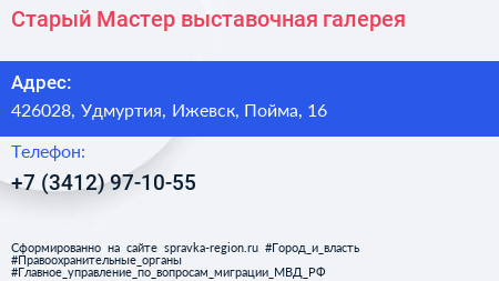 Старый Мастер, выставочная галерея по адресу 426028, Удмуртия, Ижевск, Пойма, 16 в дальнейшем Организация, размещена в следующих категориях: