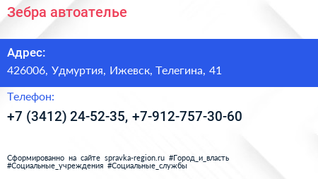 Зебра, автоателье по адресу 426006, Удмуртия, Ижевск, Телегина, 41 в дальнейшем Организация, размещена в следующих категориях: