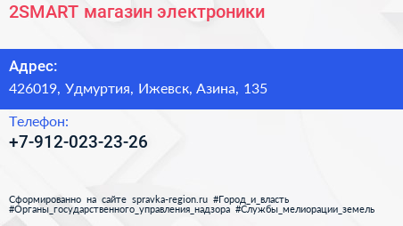 2SMART, магазин электроники по адресу 426019, Удмуртия, Ижевск, Азина, 135 в дальнейшем Организация, размещена в следующих категориях: