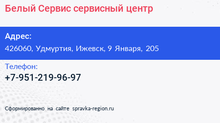 Белый Сервис, сервисный центр по адресу 426060, Удмуртия, Ижевск, 9 Января, 205 в дальнейшем Организация, размещена в следующих категориях: