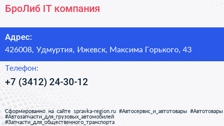 БроЛиб, IT-компания по адресу 426008, Удмуртия, Ижевск, Максима Горького, 43 в дальнейшем Организация, размещена в следующих категориях: