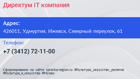 Директум, IT-компания по адресу 426011, Удмуртия, Ижевск, Северный переулок, 61 в дальнейшем Организация, размещена в следующих категориях: