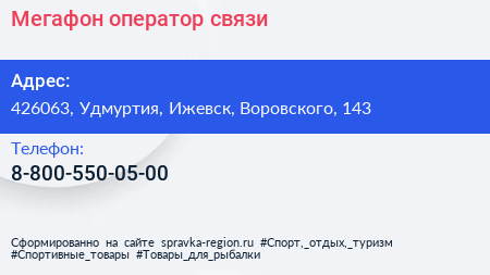 Мегафон, оператор связи по адресу 426063, Удмуртия, Ижевск, Воровского, 143 в дальнейшем Организация, размещена в следующих категориях: