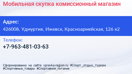 Мобильная скупка, комиссионный магазин по адресу 426008, Удмуртия, Ижевск, Красноармейская, 126 к2 в дальнейшем Организация, размещена в следующих категориях: