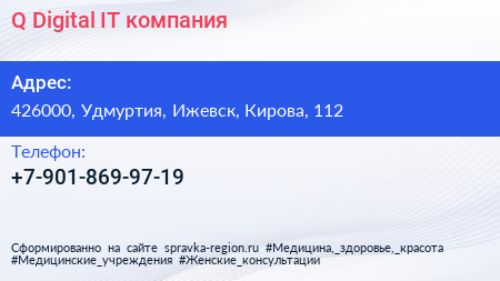 Q-Digital, IT-компания по адресу 426000, Удмуртия, Ижевск, Кирова, 112 в дальнейшем Организация, размещена в следующих категориях: