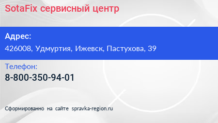 SotaFix, сервисный центр по адресу 426008, Удмуртия, Ижевск, Пастухова, 39 в дальнейшем Организация, размещена в следующих категориях:
