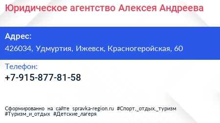 Юридическое агентство Алексея Андреева по адресу 426034, Удмуртия, Ижевск, Красногеройская, 60 в дальнейшем Организация, размещена в следующих категориях: