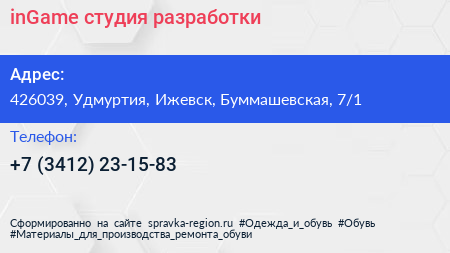 inGame, студия разработки по адресу 426039, Удмуртия, Ижевск, Буммашевская, 7/1 в дальнейшем Организация, размещена в следующих категориях: