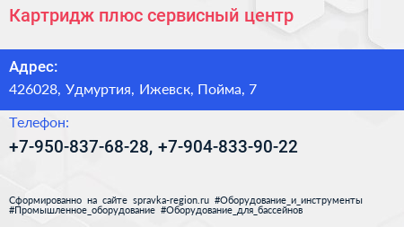 Картридж плюс, сервисный центр по адресу 426028, Удмуртия, Ижевск, Пойма, 7 в дальнейшем Организация, размещена в следующих категориях: