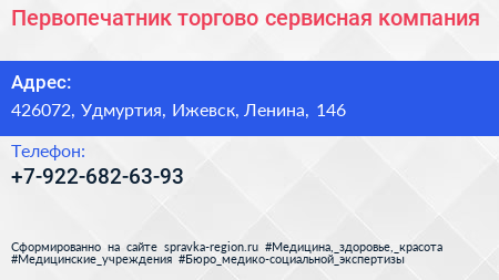 Первопечатник, торгово-сервисная компания по адресу 426072, Удмуртия, Ижевск, Ленина, 146 в дальнейшем Организация, размещена в следующих категориях: