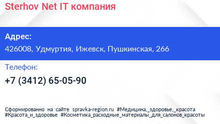 Sterhov.Net, IT-компания по адресу 426008, Удмуртия, Ижевск, Пушкинская, 266 в дальнейшем Организация, размещена в следующих категориях: