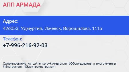 АПП АРМАДА по адресу 426053, Удмуртия, Ижевск, Ворошилова, 111а в дальнейшем Организация, размещена в следующих категориях: