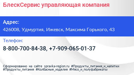 БлескСервис, управляющая компания по адресу 426008, Удмуртия, Ижевск, Максима Горького, 43 в дальнейшем Организация, размещена в следующих категориях: