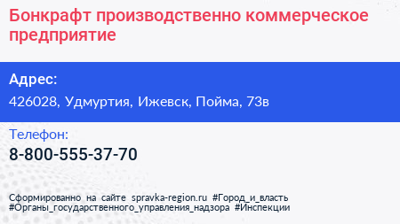 Бонкрафт, производственно-коммерческое предприятие по адресу 426028, Удмуртия, Ижевск, Пойма, 73в в дальнейшем Организация, размещена в следующих категориях: