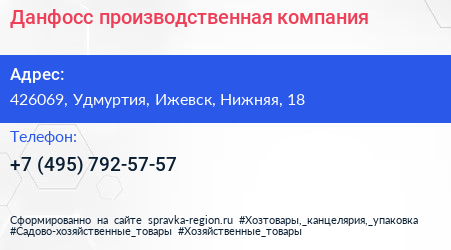 Данфосс, производственная компания по адресу 426069, Удмуртия, Ижевск, Нижняя, 18 в дальнейшем Организация, размещена в следующих категориях:
