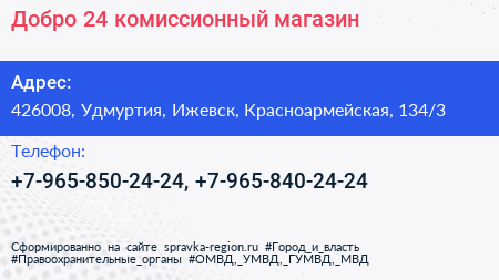 Добро 24, комиссионный магазин по адресу 426008, Удмуртия, Ижевск, Красноармейская, 134/3 в дальнейшем Организация, размещена в следующих категориях: