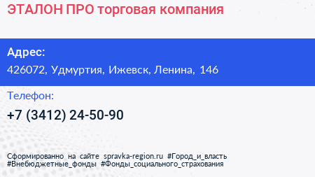 ЭТАЛОН-ПРО, торговая компания по адресу 426072, Удмуртия, Ижевск, Ленина, 146 в дальнейшем Организация, размещена в следующих категориях:
