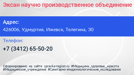 Эксан, научно-производственное объединение по адресу 426006, Удмуртия, Ижевск, Телегина, 30 в дальнейшем Организация, размещена в следующих категориях: