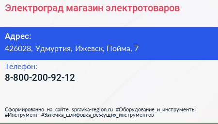 Электроград, магазин электротоваров по адресу 426028, Удмуртия, Ижевск, Пойма, 7 в дальнейшем Организация, размещена в следующих категориях: