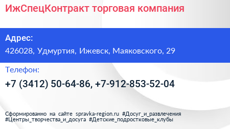 ИжСпецКонтракт, торговая компания по адресу 426028, Удмуртия, Ижевск, Маяковского, 29 в дальнейшем Организация, размещена в следующих категориях: