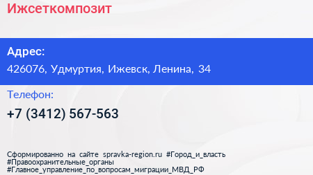 Ижсеткомпозит по адресу 426076, Удмуртия, Ижевск, Ленина, 34 в дальнейшем Организация, размещена в следующих категориях: