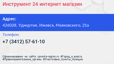 Инструмент 24, интернет-магазин по адресу 426028, Удмуртия, Ижевск, Маяковского, 21а в дальнейшем Организация, размещена в следующих категориях: