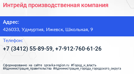 Интрейд, производственная компания по адресу 426033, Удмуртия, Ижевск, Школьная, 9 в дальнейшем Организация, размещена в следующих категориях: