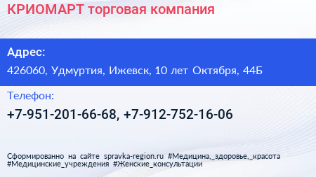 КРИОМАРТ, торговая компания по адресу 426060, Удмуртия, Ижевск, 10 лет Октября, 44Б в дальнейшем Организация, размещена в следующих категориях: