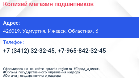 Колизей, магазин подшипников по адресу 426019, Удмуртия, Ижевск, Областная, 6 в дальнейшем Организация, размещена в следующих категориях: