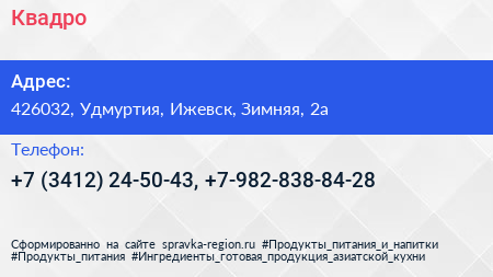 Квадро + по адресу 426032, Удмуртия, Ижевск, Зимняя, 2а в дальнейшем Организация, размещена в следующих категориях: